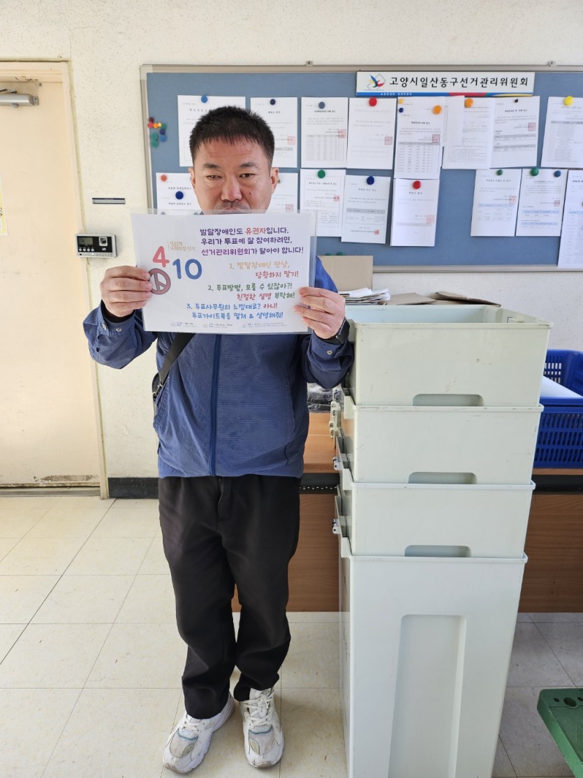 2024년 04월 02일 발달장애인 참정권 보장을 위한 전국 동시다발 1인 시위 페이지 정보 작성자 햇빛촌 조회 366회 작성일 24-04-08 10:55 본문 2024년 04월 02일 발달장애인 참정권 보장을 위한 전국 동시다발 1인 시위를 고양시 일산동구 일산로 24 2층 (백석동 1326) 선거관리위원회에서 진행하였습니다. 목록 이전글2024년 04월 03일 직무소양교육 24.04.08 다음글2024년 04월 02일 고양시 투표소 사전 모니터링 활동(2) 24.04.08