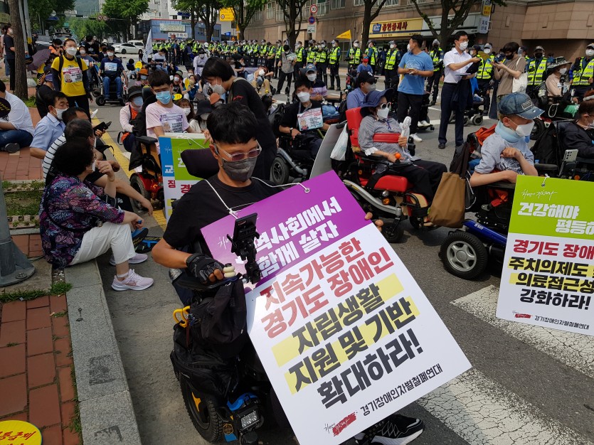 2021 06 14 경기도 장애인 지역사회 완전한 통합과 참여 쟁취 농성선포 결의대회 참가