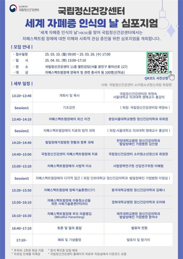 국립정신건강센터, 4월 1일 '세계 자폐증 인식의 날’ 심포지엄 개최