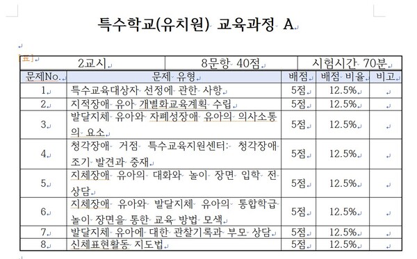 교육행정가는 모든 특수교사를 하나의 자격으로 보면 편리하겠지만 그만큼 장애 유형에 맞는 교육방법은 실현할 수 없다. 이런 문제를 해결하지 못한다하더라도 최소한 시각장애 관련 문항 하나라도 출제했어야 했다.