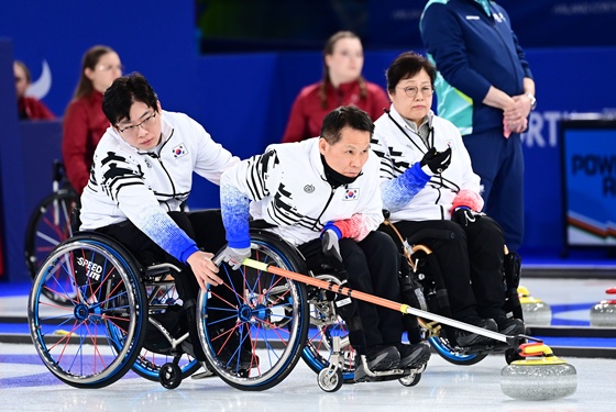 [코르티나=공동취재단] 2026 밀라노·코르티나 동계패럴림픽 휠체어컬링 혼성팀(4인조) 경기에 나선 한국 대표팀이 예선 2차전에서 연장 접전 끝에 스웨덴에 패했다.