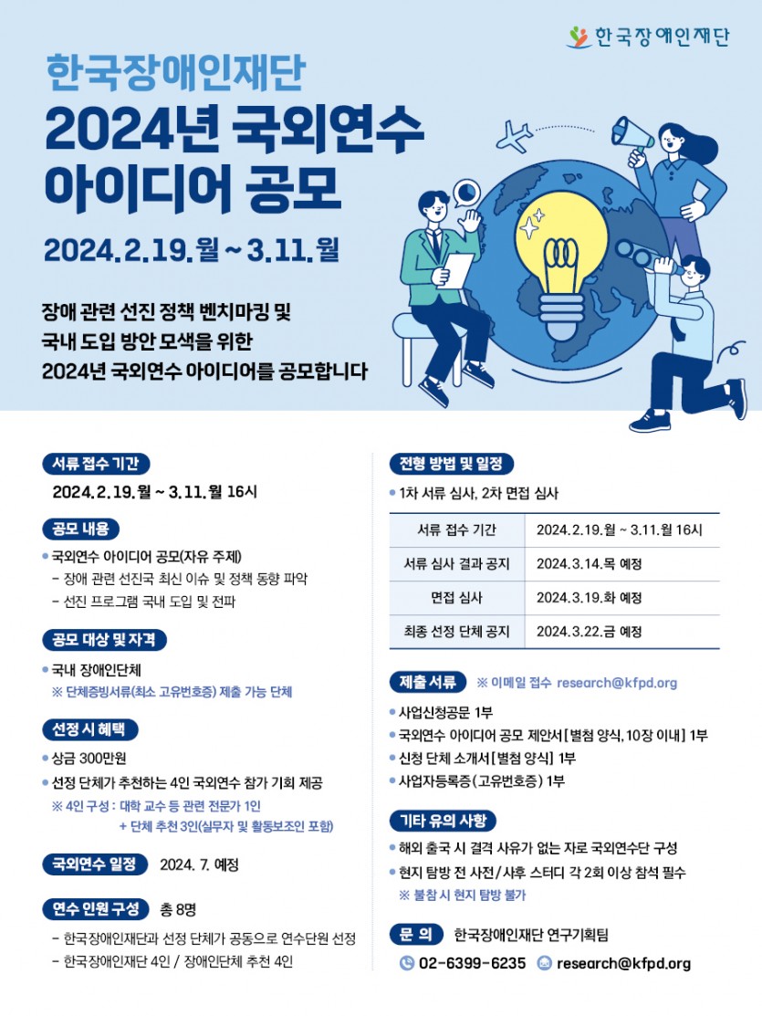 한국장애인재단, 2024년 국외연수 아이디어 공모 및 접수 시작