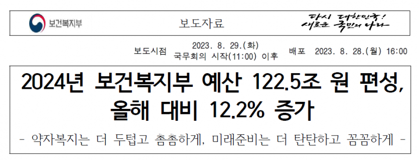 보건복지부의 지난 8월 28일 보도자료 ⓒ보건복지부