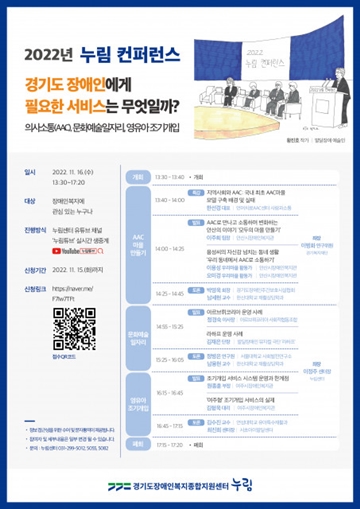 2022년 누림 컨퍼런스는 16일 오후 1시 30분부터 5시 20분까지 누림센터 유튜브 채널 ‘누림튜브’를 통해 누구나 시청할 수 있으며, 컨퍼런스 신청 및 자료집 관련 문의는 누림센터 홈페이지 공지사항에서 확인할 수 있다.