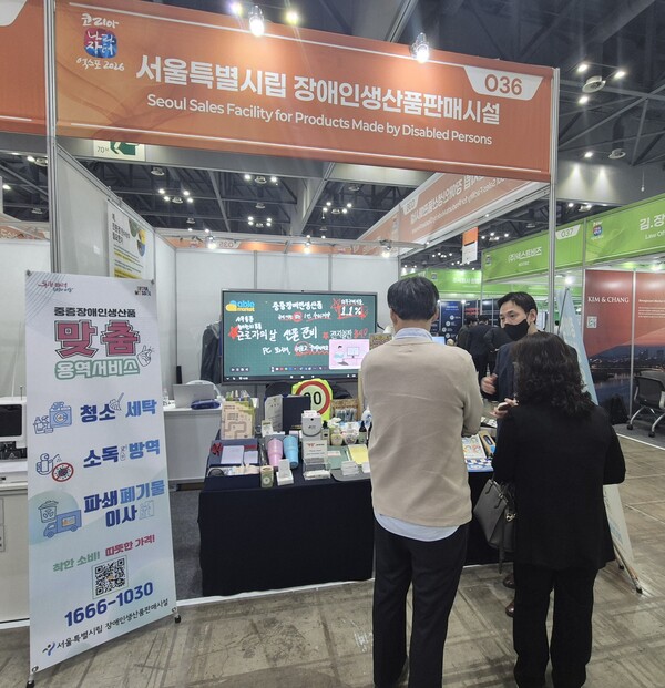【에이블뉴스 이슬기 기자】서울특별시립 장애인생산품판매시설(이하 서울판매시설)이 지난 25일부터 27일까지 일산 킨텍스에서 열린 '코리아 나라장터 엑스포 2026'를 성공적으로 마무리하며, 중증장애인생산품 홍보 및 공공기관 구매 활성화를 위한 의미있는 성과를 거뒀다.