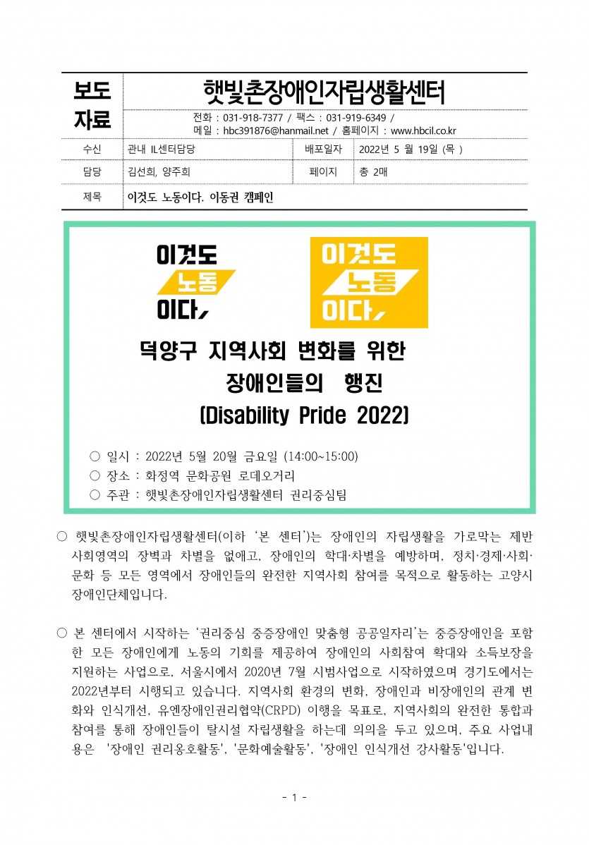 덕양구 지역사회 변화를 위한 장애인들의 행진[Disability Pride 2022] 5차 페이지 정보 작성자 햇빛촌 조회 15,457회 작성일 22-05-19 11:54 본문 덕양구 지역사회 변화를 위한 장애인들의 행진[Disability Pride 2022] 5차 목록 이전글코로나19 현황 22.05.23 다음글장애인 대상 ‘고요한M 드라이버 취업설명회’ 23일 개최 22.05.17 댓글목록 댓글목록 등록된 댓글이 없습니다.
