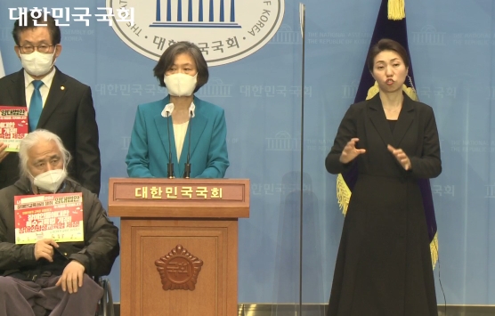 더불어민주당 유기홍, 강민정 의원과 기본소득당 용혜인 의원, 정의당 장혜영 의원, 전국장애인차별철폐연대는 26일 오전 10시 40분 국회 소통관에서 ‘4월 임시국회 내 장애인평생교육법과 장애인 등에 대한 특수교육법 제·개정 촉구’ 기자회견을 개최했다. ⓒ영상 캡쳐