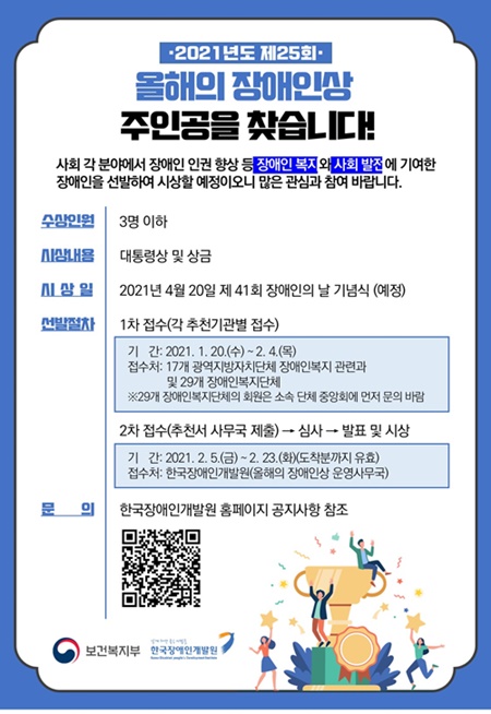 올해의 장애인상 수상후보자 모집 포스터.ⓒ한국장애인개발원 에이블포토로 보기▲ 올해의 장애인상 수상후보자 모집 포스터.ⓒ한국장애인개발원