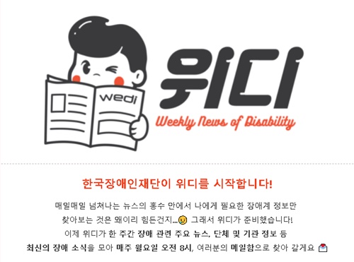 한국장애인재단이 주간장애뉴스 메일링 서비스 ‘위디(wedi)’를 시작했다.ⓒ한국장애인재단 에이블포토로 보기▲ 한국장애인재단이 주간장애뉴스 메일링 서비스 ‘위디(wedi)’를 시작했다.ⓒ한국장애인재단