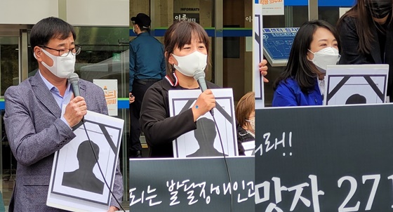 29일 오후 2시 여의도 이룸센터에서 열린 합동 추모제에서 발언하는(왼쪽부터) 전국장애인부모연대 윤종술 회장, 전국장애인부모연대 김수정 서울지부장, 더불어민주당 최혜영 의원. ⓒ에이블뉴스 에이블포토로 보기▲ 29일 오후 2시 여의도 이룸센터에서 열린 합동 추모제에서 발언하는(왼쪽부터) 전국장애인부모연대 윤종술 회장, 전국장애인부모연대 김수정 서울지부장, 더불어민주당 최혜영 의원. ⓒ에이블뉴스
