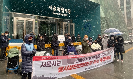 이어 “우리가 송파구 A장애인거주시설 앞의 농성을 정리했던 이유는 서울시가 그나마 민간협의체에 대한 의지를 언급했기 때문이다”면서 “시설의 거주인들도 자유롭게 살고 싶은 희망이 있을 텐데 장애인이라는 이유로 언제까지 그곳에 갇혀서 지내야 하는가. 거주인 전원 긴급탈시설을 이행할 수 있도록 민간협의체를 구성하십시오”라고 요구했다.