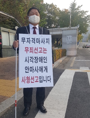 시각장애인 안마사, 중앙지법 앞 1인시위 돌입