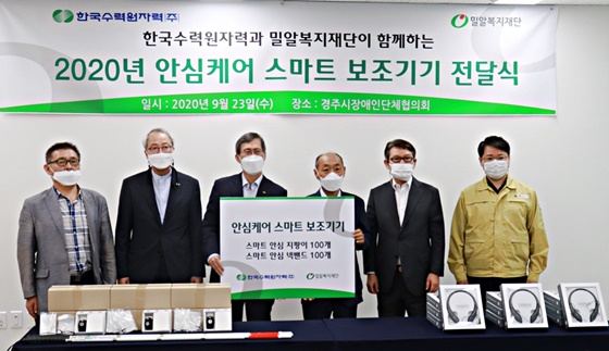 ▲ 밀알복지재단이 지난 23일 한국수력원자력과 경북 경주시에 거주하는 시각, 청각장애인 200명에게 스마트 보조기기를 기부했다. ⓒ밀알복지재단 밀알복지재단(이사장 홍정길)이 지난 23일 한국수력원자력(이하 한수원)과 경북 경주시에 거주하는 시각, 청각장애인 200명에게 스마트 보조기기를 지원했다.
