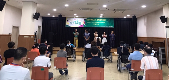 ▲ 천안시장애인종합복지관이 지난 14일 복지관 강당에서 ‘아카펠라 나린 슈비두what? 세계음악여행!’공연 관람을 진행했다. ⓒ천안시장애인종합복지관 천안시장애인종합복지관(이하 천안장복)이 지난 14일 복지관 강당에서 2020 신나는 예술 여행 ‘아카펠라 나린 슈비두what? 세계음악여행!’ 공연 관람을 진행했다.