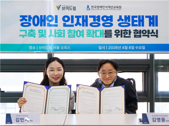 양측은 먼저 누적 450여 개에 이르는 ㈜브이드림 고객사 대상 프리미엄 장애인식개선교육을 공동 진행하고, 장애인 의무고용 이행을 위한 직무개발, 인재 매칭, 전문 컨설팅 등 각종 협력 사업을 추진할 계획이다.