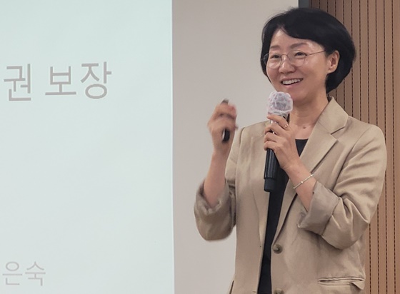 23일 오후 2시 서울 여의도 이룸센터에서 개최된 ‘발달장애인의 형사사법 과정에서의 차별시정 토론회’에서 발제하는 국가인권위원회 장애차별조사1과 최은숙 조사관. ©에이블뉴스