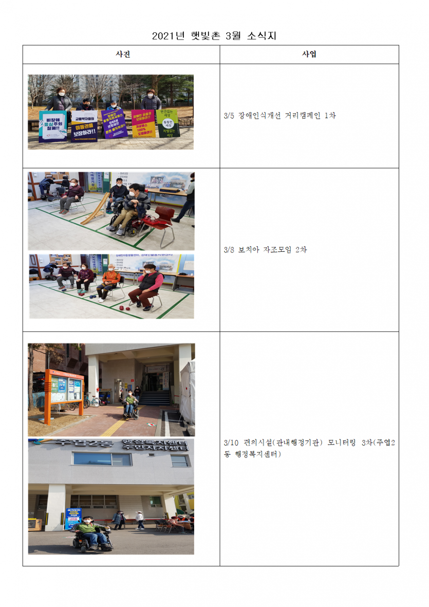 2021년 햇빛촌 3월 소식지 페이지 정보 작성자 햇빛촌 조회 2,138회 작성일 21-05-11 15:58 본문 . 목록 이전글2021년 중증장애인 지역맞춤형 취업지원사업 참여자 모집 21.05.11 다음글(2020) 연간 기부금 모금액 및 활용실적 21.04.29 댓글목록 댓글목록 등록된 댓글이 없습니다.