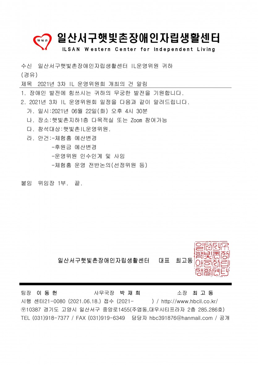 2021년 3차 IL 운영위원회 개최의 건 알림
