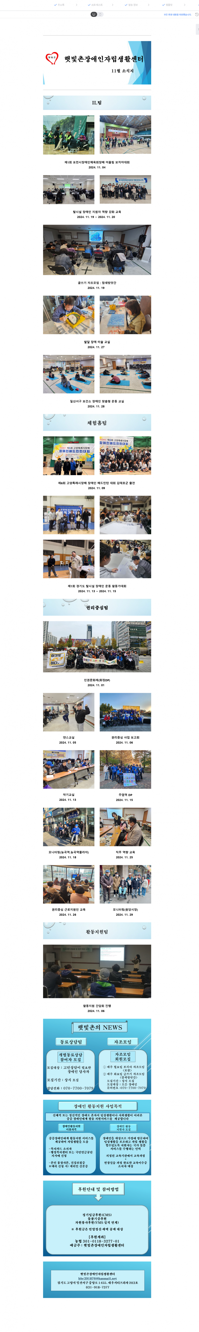 2024년 11월 햇빛촌 소식지 페이지 정보 작성자 햇빛촌 조회 1,389회 작성일 24-12-09 21:23 본문 2024년 11월 햇빛촌 소식지 목록 이전글2024년 햇빛촌 사업보고 대회 안내 24.12.15 다음글2024년 10월 햇빛촌 소식지 24.11.11 댓글목록 댓글목록 등록된 댓글이 없습니다.