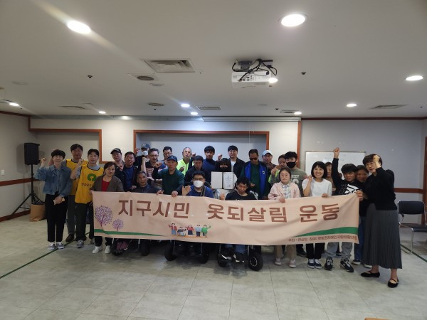 2025년 04월 23일 지구시민 옷되살림운동(헌옷수거전달식) 페이지 정보 작성자 햇빛촌 조회 302회 작성일 25-05-30 15:08 본문 2025년 04월 23일 지구시민 옷되살림운동(헌옷수거전달식) 목록 이전글2025년 04월 28일 댄스교실(살세이션) 25.05.30 다음글2025년 04월 14일 현수막 제작(장애인도 시민으로 이동하는 민주주의) 25.05.30 댓글목록 댓글목록 등록된 댓글이 없습니다.