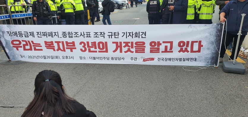 2021 10 26 장애등급제 진짜폐지 종합조사표 조작 규탄 기자회견 페이지 정보 작성자 햇빛촌 조회 456회 작성일 22-01-17 11:42 본문 2021 10 26 장애등급제 진짜폐지 종합조사표 조작 규탄 기자회견 목록 이전글2021 10 30 발달장애인사회성발달프로그램 (북한산 우이령 나들이) 22.01.17 다음글2021 10 22 컴퓨터교실 (햇빛컴온) 30차 22.01.17