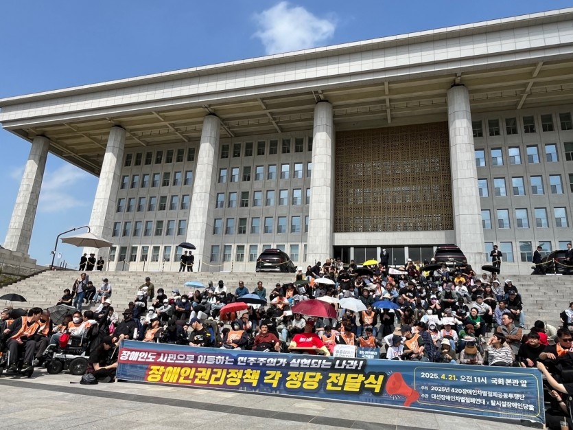 420 장애인차별철페의날 전국집중결의대회 1박2일 2025.04.20 페이지 정보 작성자 햇빛촌 조회 300회 작성일 25-04-22 13:33 본문 마로니에 공원 국회의사당 .1박2일 420 장애인차별철페의날 전국집중결의대회 25.04.20 목록 이전글경기420장애인차별철폐공동투쟁단 출범대회 및 DP행진 2025.04.24 25.04.28 다음글편의시설 키오스크 모니터링 2025.04.08 25.04.09