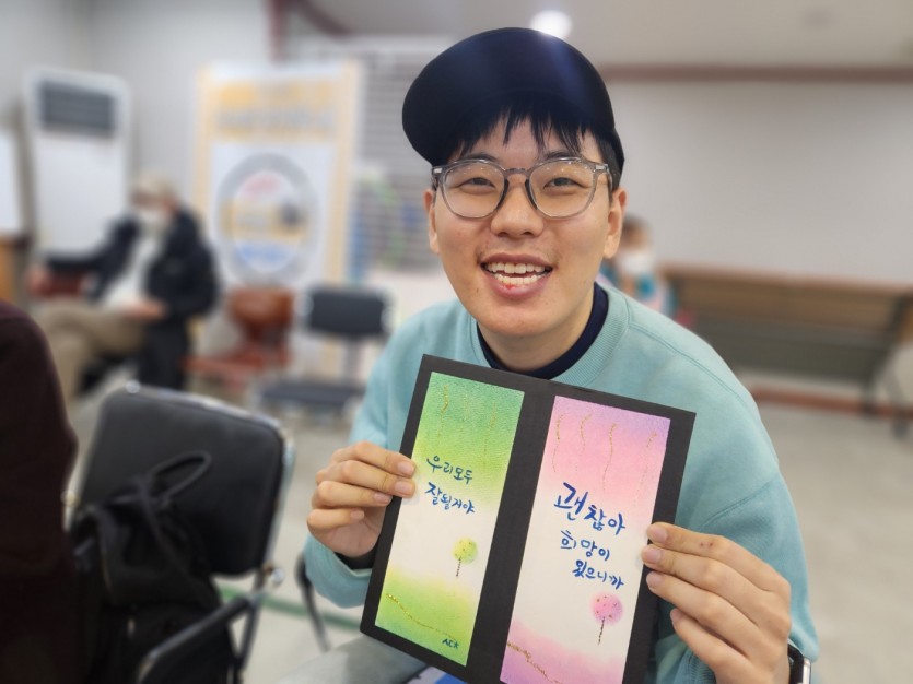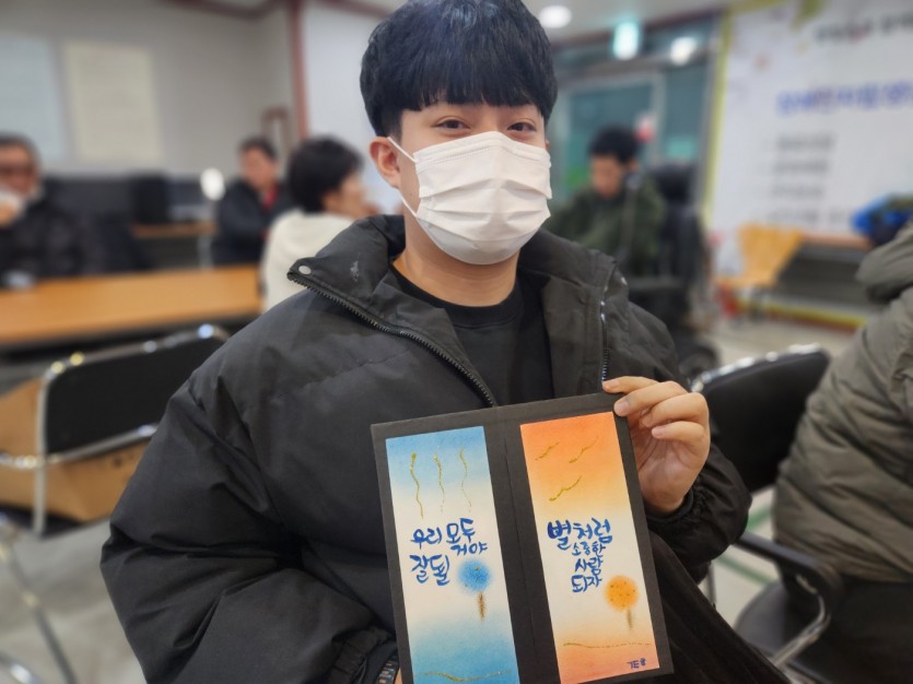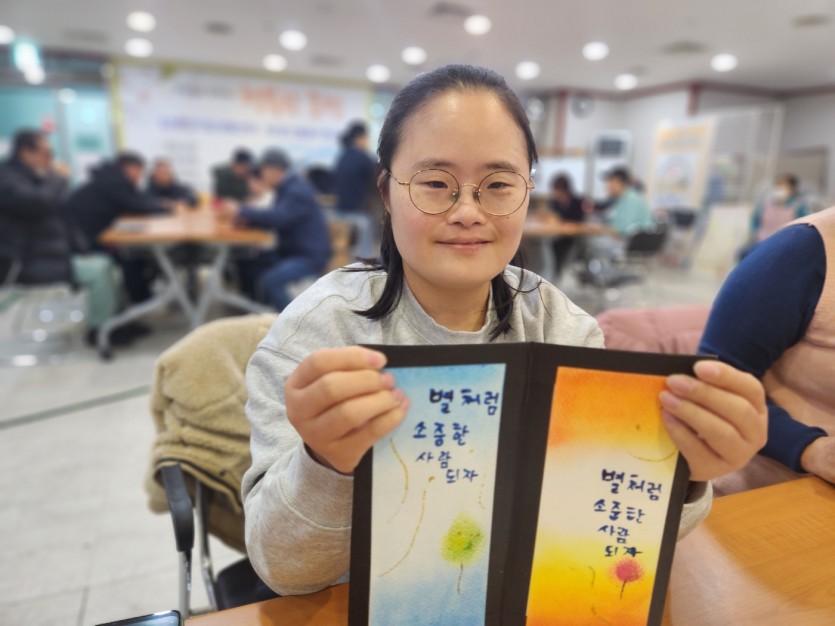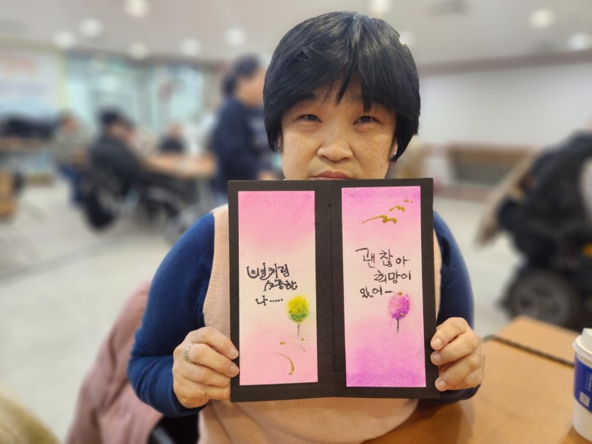 2025년 12월 02일 미술교실(캘리그라피) 페이지 정보 작성자 햇빛촌 조회 200회 작성일 25-12-26 10:52 본문 2025년 12월 02일 미술교실(캘리그라피) 목록 이전글2026. 01. 27. 장애인자립지원기술교육(ILP) 원예교육 26.01.28 다음글2025년 12월 15일 2025년 하반기 사업보고회 25.12.26