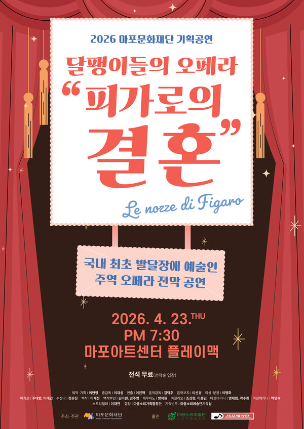 【에이블뉴스 이슬기 기자】마포문화재단이 오는 4월 23일 오후 7시 30분 마포아트센터 플레이맥에서 2026 배리어프리(Barrier-free) 기획공연 ‘달팽이들의 오페라 피가로의 결혼’을 개최한다.