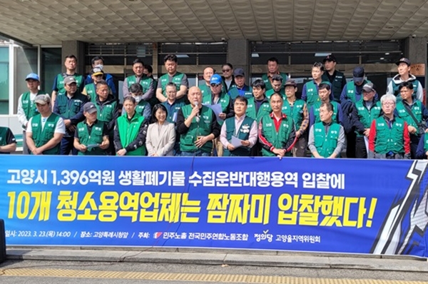 한편, 2023년 3월 정의당 지역위원회와 전국민주연합노동조합이 고양시 생활폐기물 수집·운반대행 청소용역업체들의 입찰 담합을 공정거래위원회에 신고함과 동시에 고양시에는 청소계약 해지 및 추후 입찰 배제 등 강력한 제재를 요구한 바 있다. (2023년 3월 23일자 ‘고양시 생활폐기물 수집운반대행 입찰업체 담합 기자회견 열려··공정위 신고’ 기사 참조)
