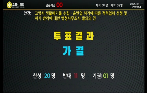 고양시의회 '고양시 생활폐기물 수집·운반업체 선정 및 허가 반려' 관련 행정사무조사