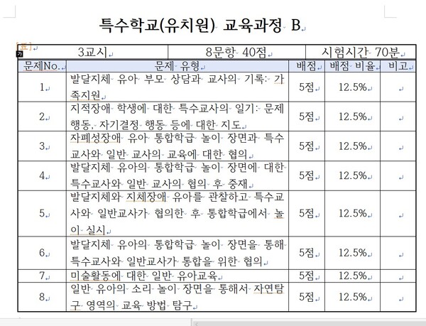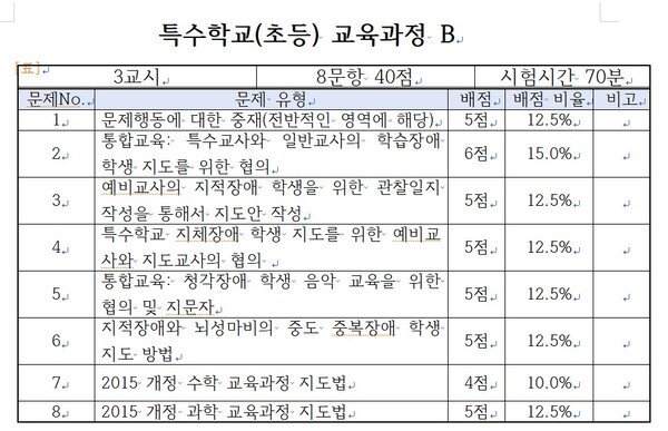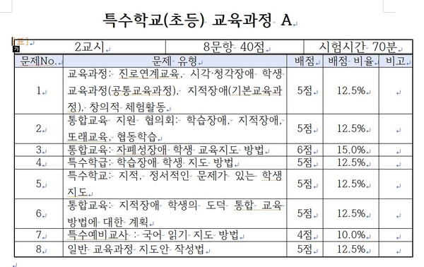 교육행정가는 모든 특수교사를 하나의 자격으로 보면 편리하겠지만 그만큼 장애 유형에 맞는 교육방법은 실현할 수 없다. 이런 문제를 해결하지 못한다하더라도 최소한 시각장애 관련 문항 하나라도 출제했어야 했다.