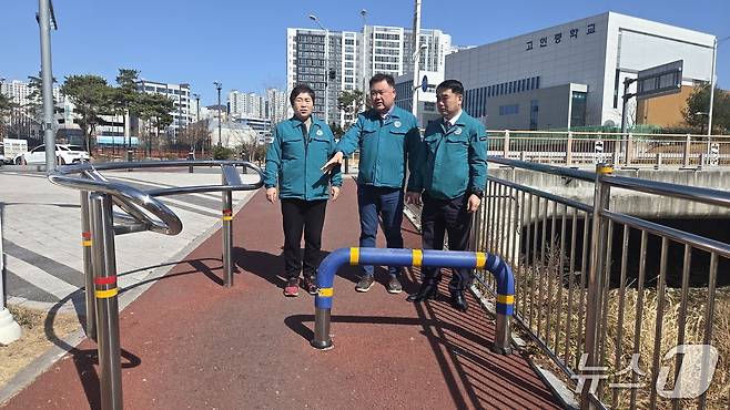 (울산=뉴스1) 김세은 기자 = 울산 북구의회 박재완·손옥선·박정환 의원이 24일 송정동 부근 하천 산책로를 찾아 현장 점검을 실시했다.