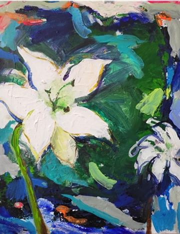 작가는 일상에서의 산책이나 여행에서 만나는 식물 이미지에서 받은 영감을 작품의 소재로 사용한다. 집의 정원에서 산책과 사색을 통해 느낌 즉 기억의 편린을 모자이크하듯이 화면에서 춤춘다. 그래서 시공간을 초월한 다른 종의 식물을 꽃꽂이 하듯이 한 화면에 함께 구성하여 표현돼 있다.