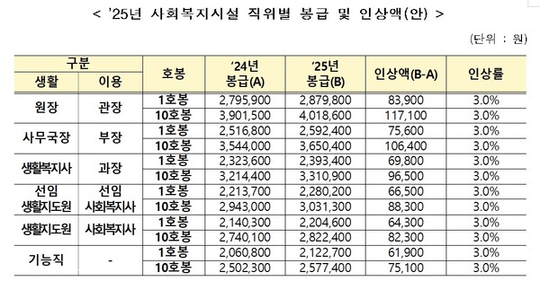 이번 처우개선위원회에서는 사회복지시설 종사자의 인건비를 전년 대비 3% 인상하는 ‘2025년 사회복지시설 종사자 인건비 가이드라인’이 심의·의결됐다. 3%는 공무원 보수인상률과 동일한 인상률이다.