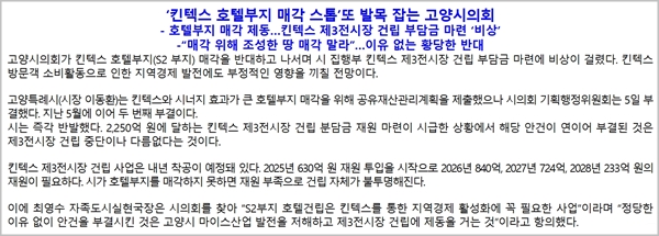 고양시의회, 킨텍스 S2호텔부지 매각案 3번째 '부결'··부메랑 된 고양시 보도자료