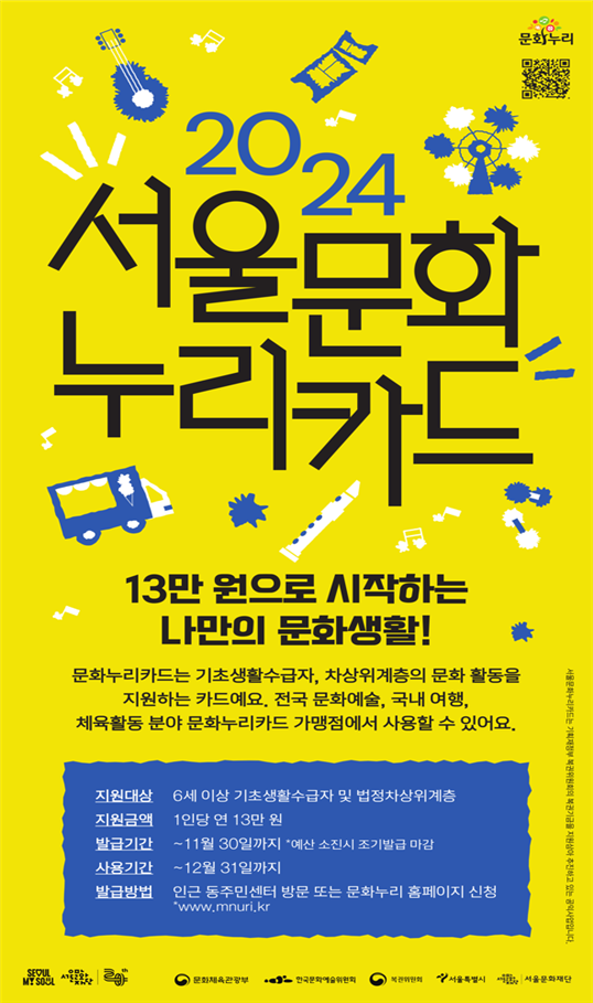 문화누리카드는 서울시내 기초생활수급자와 차상위계층 45만 명(만 6세 이상)의 삶의 질 향상과 문화격차 완화를 위해 1인당 연 13만원을 지원하는 문화복지 사업이다.
