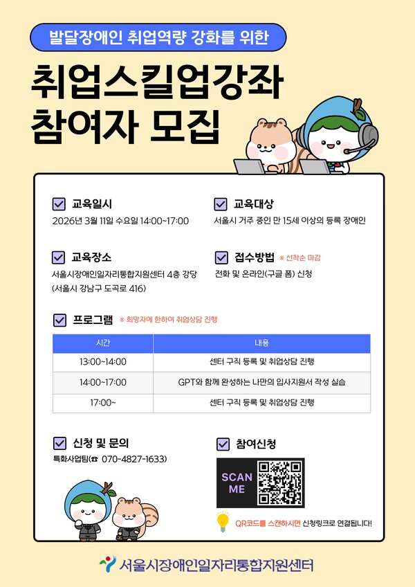 서울시장애인일자리통합지원센터, 취업스킬업강좌 1회차 참여자 모집