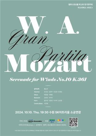 이번 제2회 정기연주회는 황남규 음악감독의 지휘로 모짜르트의 마스터피스 관악을 위한 세레나데 제10번 ‘Gran Partita’ 전곡 연주에 도전한다.