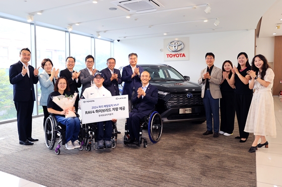 대한장애인체육회 공식파트너인 한국토요타자동차(대표이사 사장 콘야마 마나부)는 지난 20일 토요타 분당 전시장에서 ‘파리 패럴림픽 MVP 선수 토요타 RAV4 하이브리드 차량전달식’을 열었다.