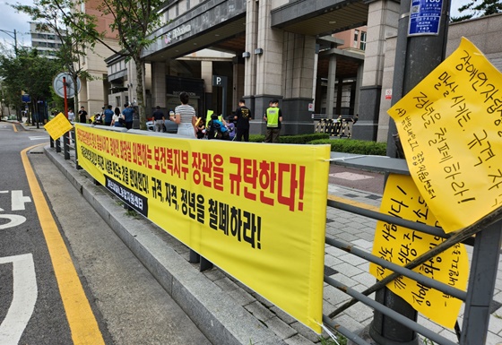 ‘IL센터 시설화 반대, 식당 등장애인화장실 의무화’ 복지부장관 자택 앞 집회