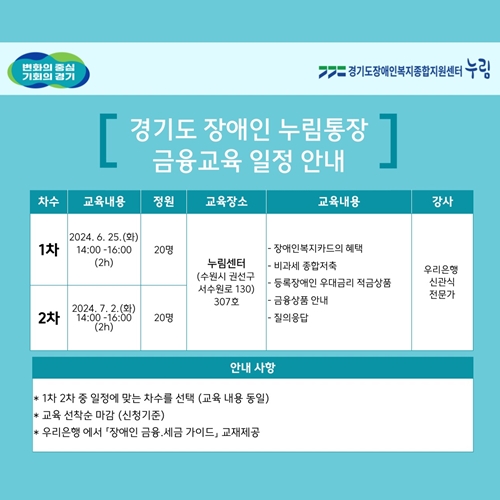 누림센터, 경기도 장애인 누림통장 만기자 대상 대면교육 개최