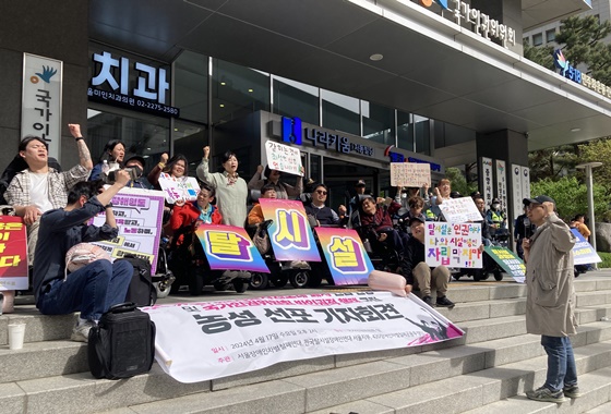 특히 이날 기자회견에 참여한 참가자들은 인권위가 장애인의 탈시설 권리를 위해 함께 목소리 높여줄 것을 촉구했다.