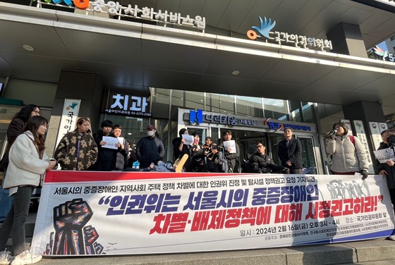 마지막으로 “이러한 서울시의 태도는 절대 인정되는 것이 아니다. 유엔 장애인권리협약에서는 장애인이 돌봄이 많이 필요하다는 이유로 차별해서는 안 된다고 규정하고 있다”면서 “인귄위는 말도 안 되는 차별을 하고 있는 서울시에 따끔한 권고를 내려달라. 나아가 갈수록 후퇴하고 있는 서울시 탈시설 정책에 대해서도 정책 권고를 내려주기를 강력히 요구한다”고 촉구했다.
