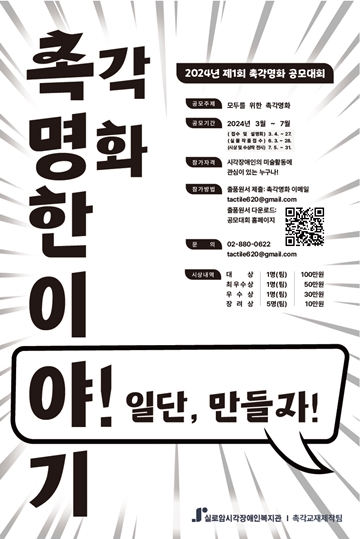 이후 3월 29일 1차 통과자를 대상으로 오는 6월 3일부터 28일까지 2차 실물 접수가 진행되며 선정자는 실로암시각장복 S갤러리로 방문해 촉각명화 작품을 출품해야 한다.