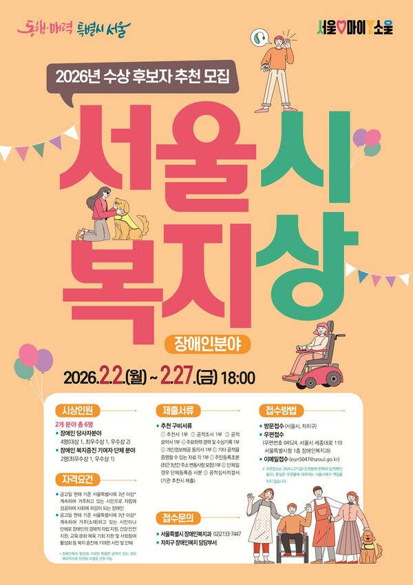 2026년 장애인 분야 ’서울시 복지상‘ 후보자 공모‥27일까지