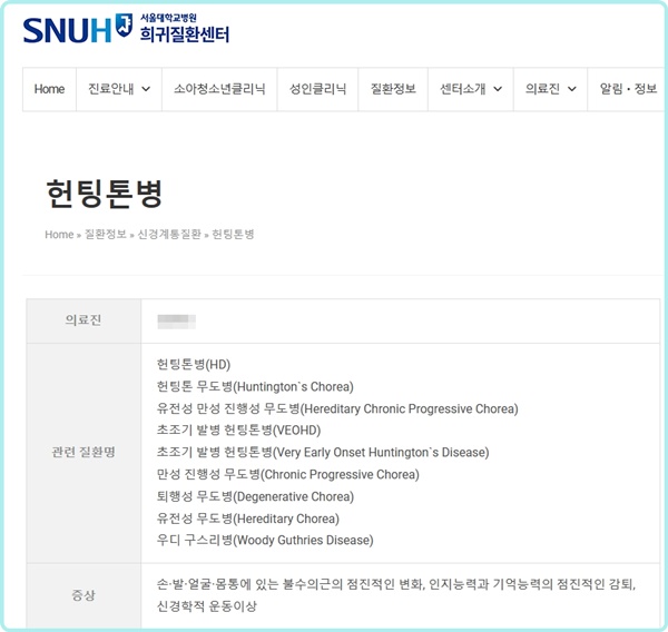 헌팅톤병. ⓒ서울대학교병원 희귀질환센터