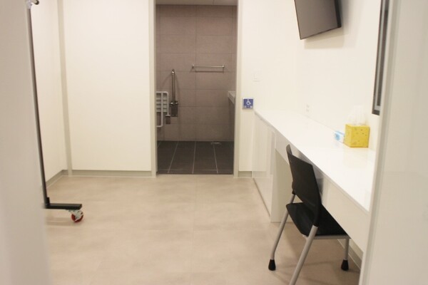 1인 분장실의 경우 화장실 및 샤워실이 마련됐는데 샤워기가 휠체어를 사용하는 장애인이 이용하기에는 설치 위치가 높아 보였던 반면, 벽면에 샤워용 의자가는 양호하게 설치됐다.