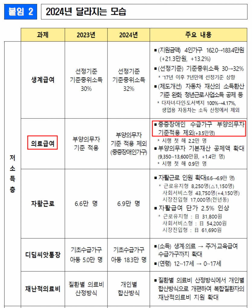 (부양의무자 기준 미적용) 수급자 가구에 중증장애인이 있을 경우 의료급여 부양의무자 기준 미적용*