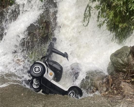 자동차도 위험하여 갈 수 없는 길을 휠체어 이용 장애인 B씨는 이 길을 통과해서 집으로 가야 했다. 아내는 휠체어를 타고 가는 남편이 비에 덜 젖도록 우산을 들고 뒤따라 걸었다. 경사가 급하면 갈 수 없는 것이 휠체어이고, 특히 비가 물바다가 되어 도로 위를 흘러내리고 있었다. 그러니 전동휠체어가 아무리 앞으로 나아가려 해도 헛바퀴가 돌고 오히려 물의 힘에 밀려 미끄러질 수밖에 없었다.