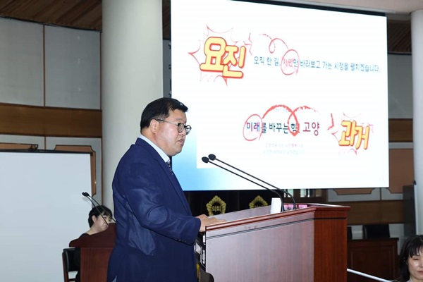 이날 임홍열 의원은 “이동환 시장은 신청사와 관련해 처음에는 민관복합개발 하겠다고 했다가 그린벨트의 공공청사는 민관복합이 불가능함이 알려지자 5,000평 규모로 축소 건립하겠다고 정책을 선회하였고, 이후 올해 1월 4일 담당부서도 의회도 모르게 시청사를 백석동 요진업무빌딩으로 이전하겠다고 발표했다”라며 “그러다 5월 17일에는 ‘시장실은 원당 현청사에 두겠다’라고 하였다가 5월 23일 보도자료에서는 ‘사실무근이다. 본청(시장실 포함)을 백석으로 옮기겠다’고 발표하는 등 갈팡질팡 함에 따라 앞으로 시청사를 두고 또 어떤 일이 일어날지 모르겠다”고 힐난했다.